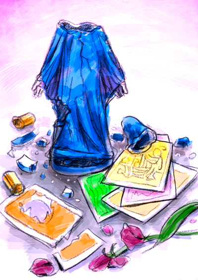 Reviraram o lugar à procura de algo de valor, tirando móveis do lugar e puxando as gavetas que encontrassem pelos móveis. A cada gaveta arrancada de seus nichos, saltavam quinquilharias de todo tipo.