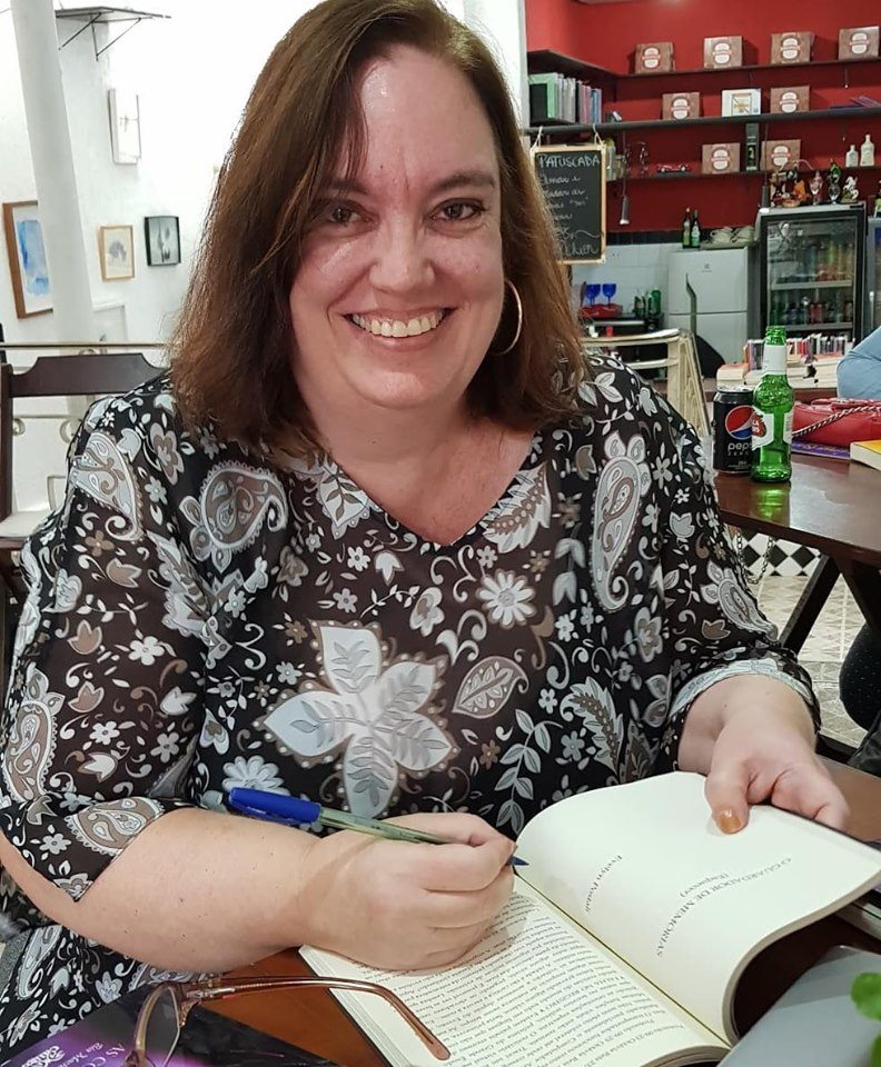 É autora dos romances “Tempestade” (2021), disponível na Amazon, e (Entre)Linhas e Guias (2023), publicado pela Ed. Folheando.