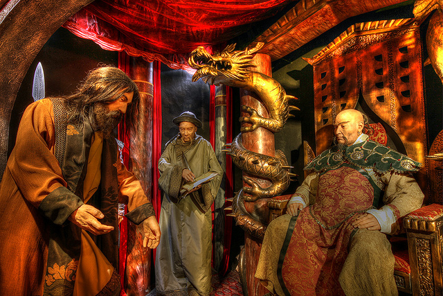 Seu Império se estendia da China ao Paquistão, banhado pelas águas quentes do Pacifico às misteriosas e eclipsadas do Mar Negro, uma extensão jamais imaginada para um Khagan. Englobava cidades e países que Kublai sequer sonharia em visitar, pisar com seus próprios pés e averiguar de perto seus súditos. Seus representantes, assim como seu exército, eram muitos. Mas mesmo assim, Kublai ansiava por conhecer as terras desconhecidas que seu império tocava. Para saciar seu desejo, sempre que podia recebia a visita do explorador veneziano Marco Polo, seu embaixador há anos.