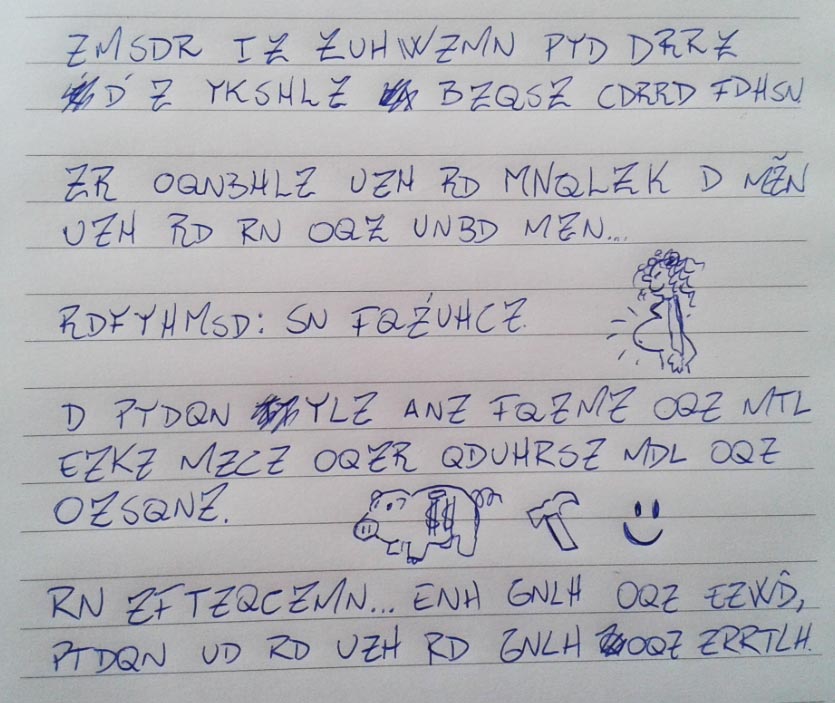 Se a chave para o texto não fosse o desenho da grávida, não teria descoberto que o código se baseava sempre na letra seguinte. Elementar, meu caro!