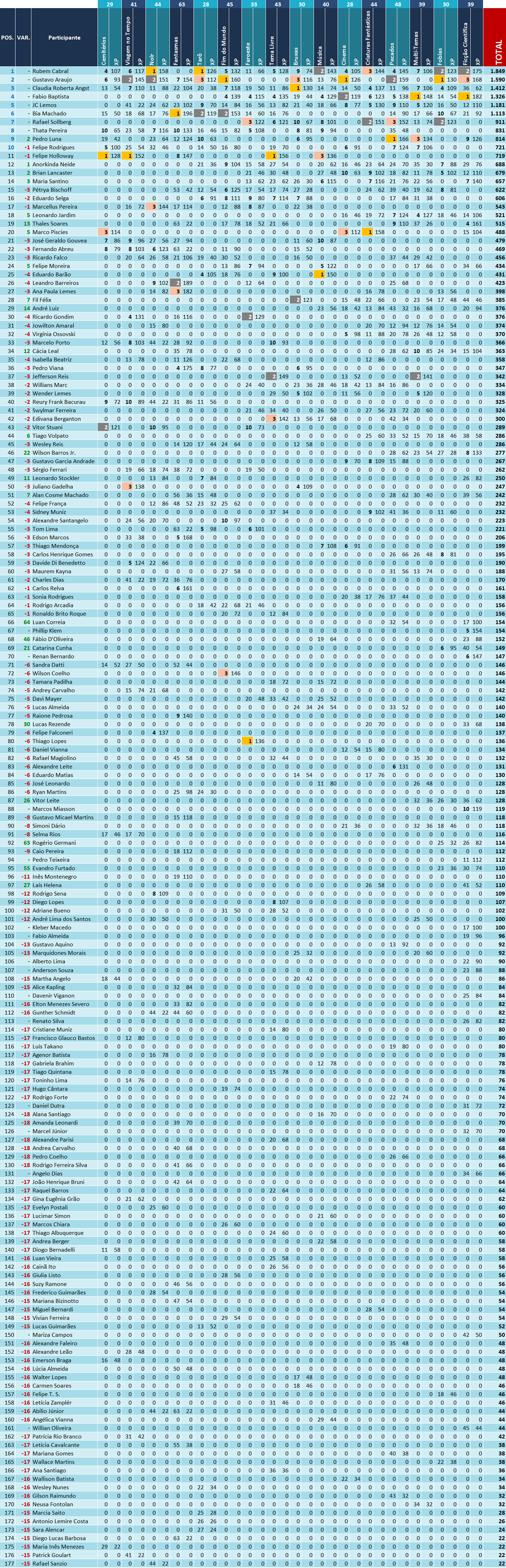 Começando pelo Ranking Geral, onde alguns dos destaques do último desafio galgaram (sempre quis usar essa palavra!) várias posições.