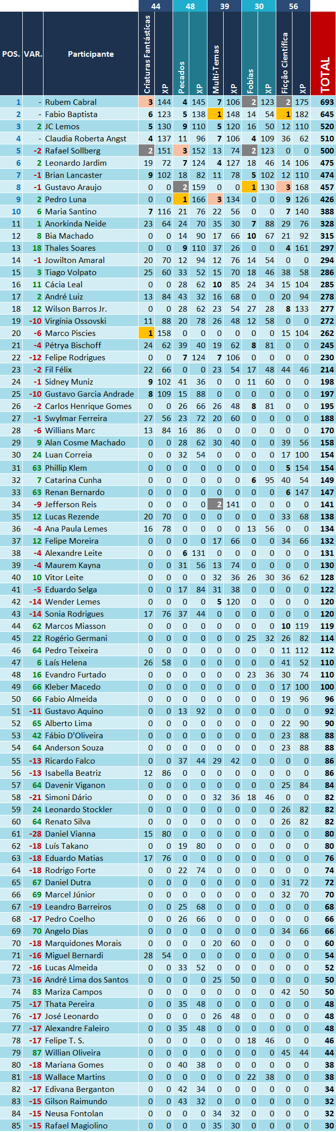 Vamos conferir como ficou nosso ranking após o desafio Ficção Científica?