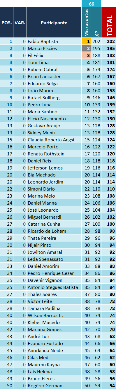 Encerrado o desafio “Microcontos”, é hora de conferir como ficaram nossos rankings.