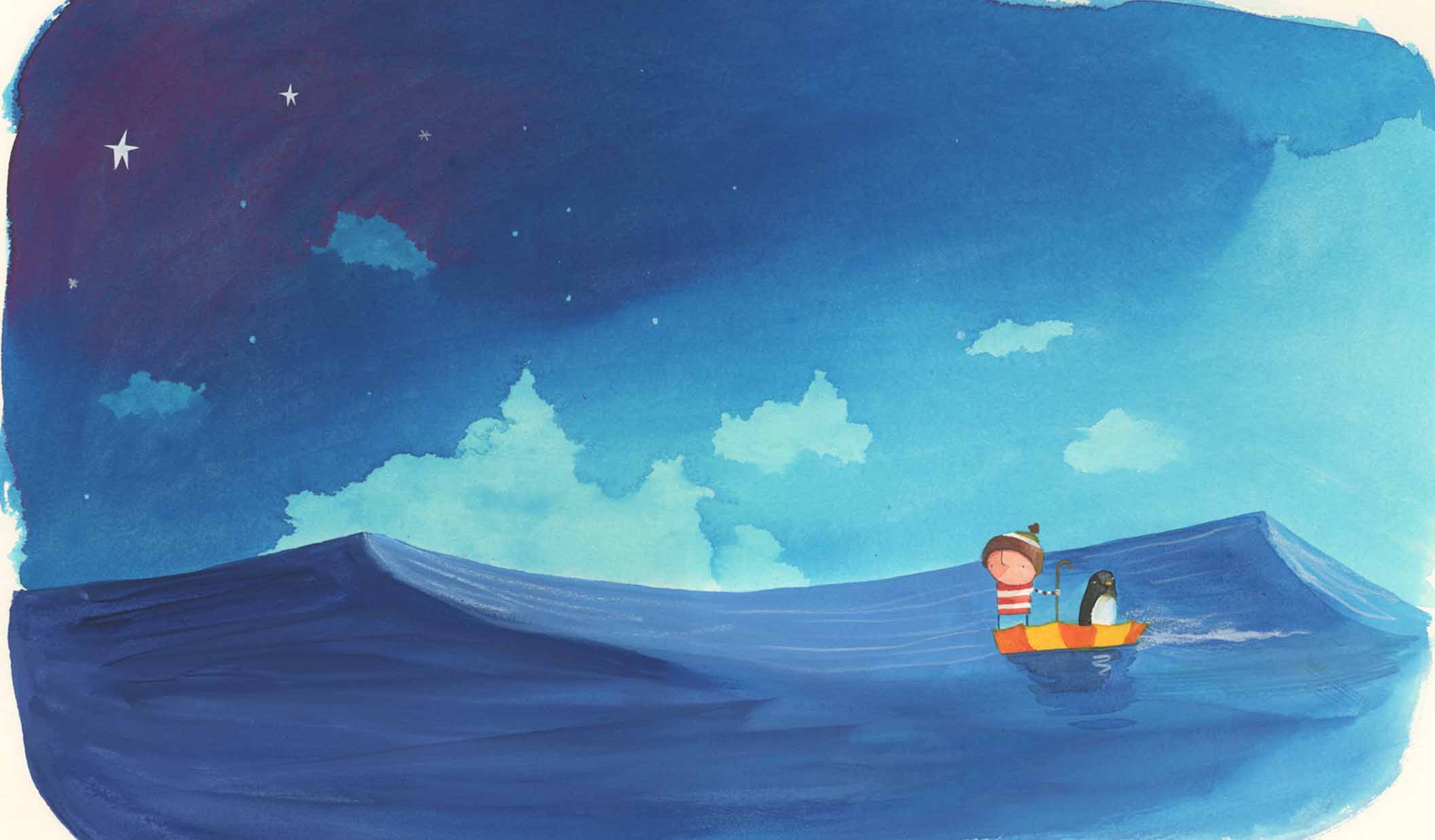Em uma pequena vila litorânea, um pinguim bate à porta da casa em que vive um menino. Surpreso com a visita inusitada, o garoto imagina que a pequena ave está perdida e resolve ajudá-la a encontrar o lugar de onde veio. A procura os leva a diferentes lugares no vilarejo, sem resultados. “Os pinguins vêm do Pólo Sul”, descobre o garotinho ao ler um livro. É o que basta para que ele decida arrumar um pequeno bote e levar a ave até lá. Juntos, então, empreendem uma viagem pelos mares bravios e tempestuosos, contando histórias um para o outro. Até que chegam ao Pólo Sul e precisam se separar.