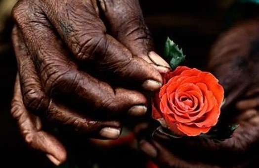 Seu Sebastião agachou-se com um pouco de dificuldade e Joãozinho confiou-lhe um pequeno objeto vermelho: uma flor que o velho tomou entre as mãos com extremo cuidado.