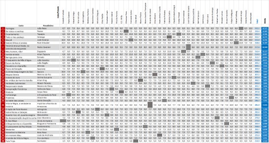 Completando o pódio, com 325,5 pontos e 8,346 de média, “Encantamento“, de Evelyn Postali: