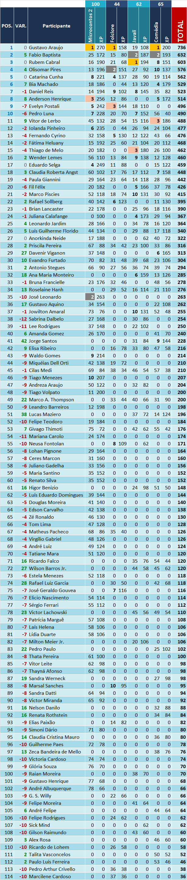Vamos conferir como ficaram nossos rankings após o desafio Comédia?