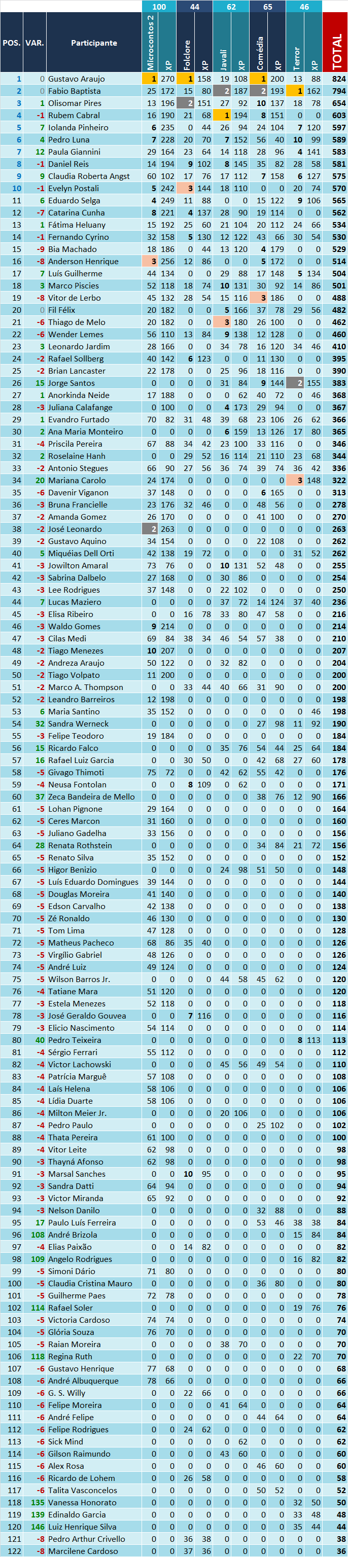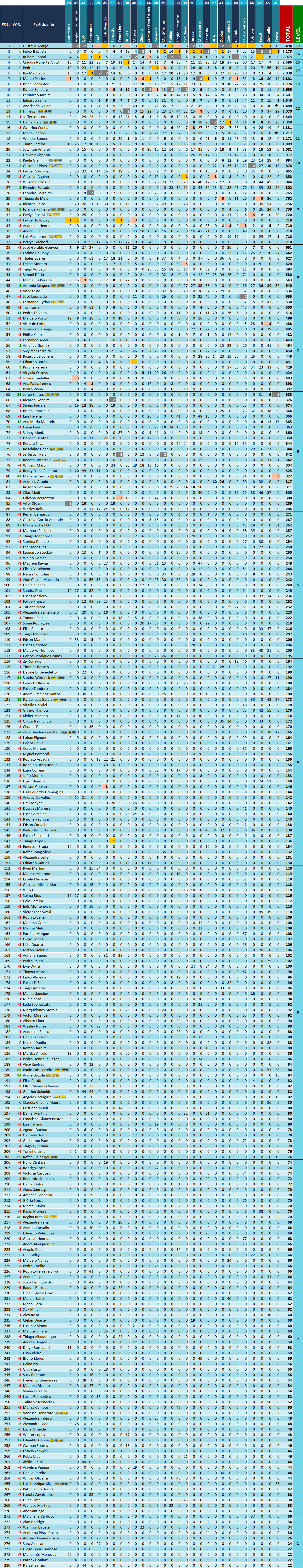 Em seguida, nosso já tradicional Ranking do RPG (ou Ranking do XP) que soma os pontos obtidos pelos quase 300 escritores e escritoras que já passaram pelo Entrecontos ao longo de 29 certames.