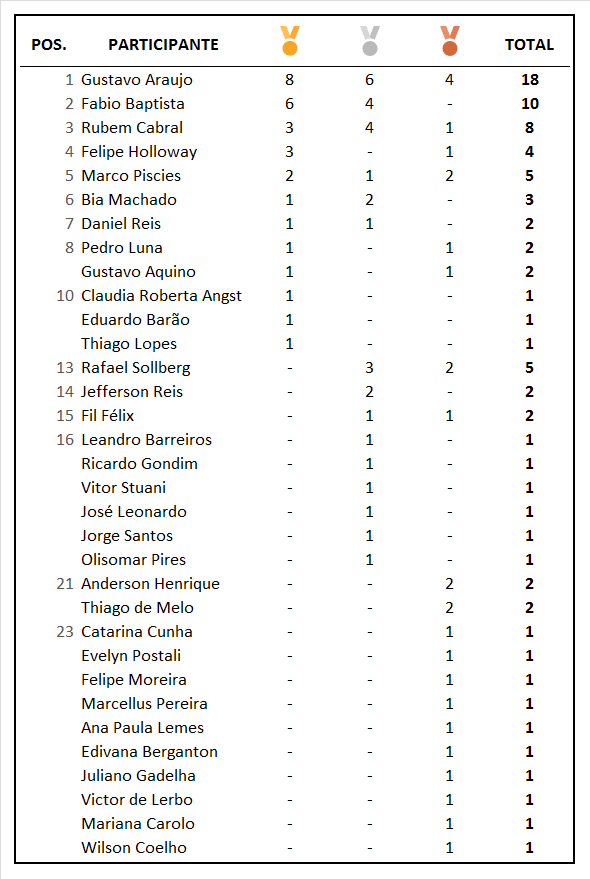 Finalmente, o nosso quadro de medalhas: