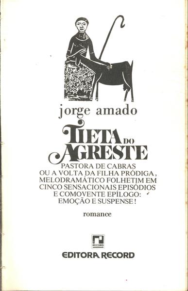 Jorge Amado publicou em 1977 o livro Tieta do Agreste, que viria a ser uma de suas obras mais famosas, em parte pela novela de 1989, exibida pela Globo e protagonizada por Betty Faria. Trata-se de um romance que aborda a pobreza do sertão nordestino, o preconceito e moralismo das pessoas de bem, a vida de aparência, o corporativismo, pedofília, estupro, machismo e feminismo em meio a muito humor e situações das mais absurdas. Num linguajar bastante carregado de regionalismos e numa estrutura onde o próprio autor se transforma em personagem, é uma excelente leitura!