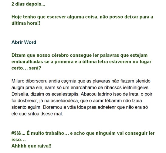 Opolápá, dispistrapraípidapa. Ri-me bastante pois todos nós já passámos por isto, ou algo muito semelhante. nthoe cifadelida me elr cordato sam men dosto e gepruton es trãoe sideguonco. Muito divertido e bastante experimental. parabéns e boa sorte no desafio.