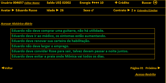 Que baita conto! E homenagem. Eu adorei cada linha. Acho que o texto merece uma revisão, corrigir alguns erros de concordância, gramaticais etc, mas o conto é muito bom. A ideia de que fazemos parte de um sistema (na música) se remete ao conto, sendo o escritor um manipulador, um ser que têm sobre seus personagens controle absoluto. Há quem diga o contrário, que personagens bem definidos assumem a narrativa e têm ações inesperadas, surpreendendo até mesmo seu criador. Na minha opinião, acontece um pouco dos sois quando escrevemos e criamos. A pegada da programação dá um toque atual ao contexto. Parabéns!