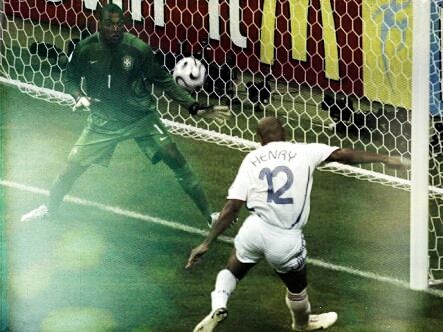 Esse é o único momento memorável do jogo. Foi uma falta boba do lado esquerdo do ataque francês. Zidane ajeitou a bola com carinho, correu e bateu na bola com uma leveza extraordinária. A pelota fez uma curva fugindo da bagunça típica causada por uma cobrança dessas e encontrou Thierry Henry livre, leve e solto. O atacante levitou no ar e chutou com o lado interno do pé. A rede estufou-se como se tivesse ocorrido uma explosão.