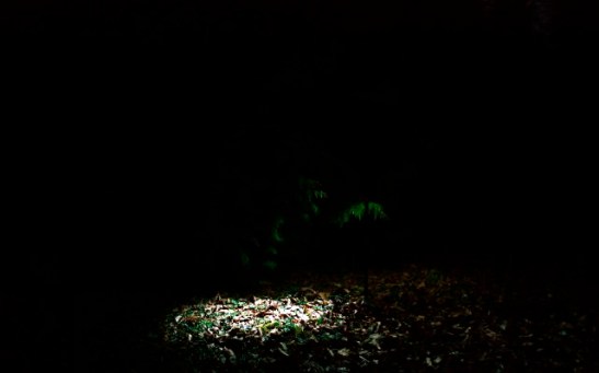 Enxergando poucos centímetros à frente, caminhava trôpego entre galhos e raízes, guiado unicamente pela luz na claridade adiante. A toda volta, sons indistintos e a sensação de ser observado o seguiam.