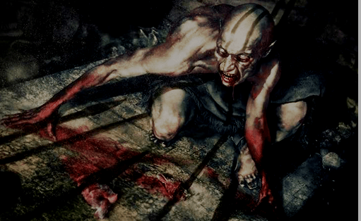 Uma voz poderosa, brutal como o berro de um animal desconhecido ecoa, trazendo medo e aflição. No fogo se forma uma face monstruosa, diferente de tudo o que o olho humano já viu.