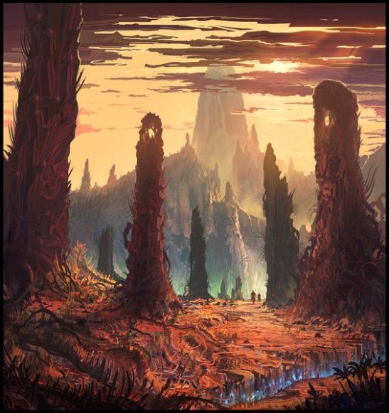 Asdrúbal piscou, e seus olhos viram novamente a pele bronzeada de Evach, e seu rosto encantador. Mas após nova piscadela, viu uma cara totalmente medonha no lugar. Na cabeça alongada, a boca estava aberta, praticamente uma fenda que dividia o rosto em dois hemisférios, exibindo dentes triangulares e serrilhados. Os olhos eram duas chamas cruéis, revirados pelo gozo. Das costas, brotava um par de enormes peles secas, raiadas de nervos negros.