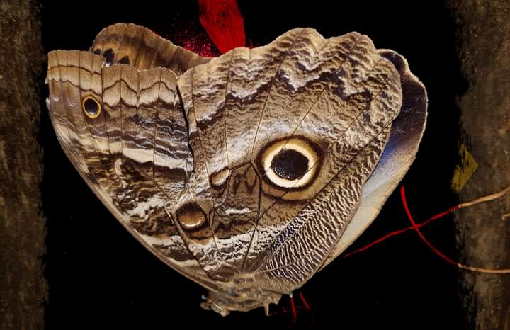 Um barulho de asas chamou sua atenção. Asas grandes. Batendo lentamente.  Virou na direção do som bem a tempo de ver uma mariposa enorme, com as asas em preto e marrom, a centímetros de seu rosto.