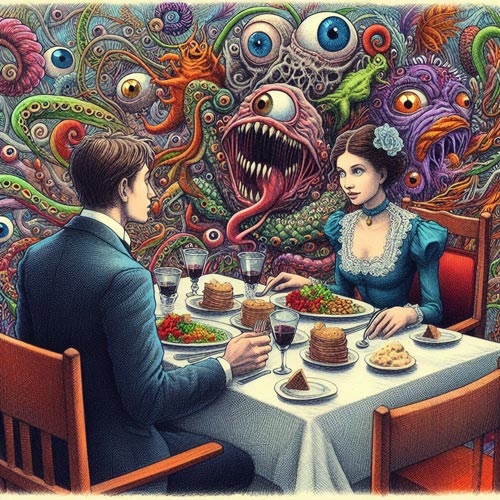 ◊ Título =   JANTAR INSANO – O título já sugere que haverá um jantar e insanidade. Loucura estará presente como aperitivo, prato principal ou sobremesa?