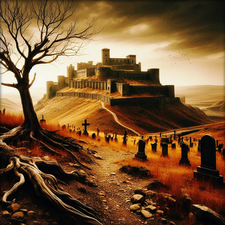 Ao retornar de uma de suas expedições exploratórias, o pai trouxe um antigo binóculo militar para o filho. A primeira coisa que o menino fez, naturalmente, foi observar a paisagem pela janela do quarto. Devido a duas paredes externas, sua visão do horizonte era reduzida, mas podia ver no topo de uma colina, uma árvore seca, desprovida de folhas. Árido e estéril também era o solo ao seu redor. Havia algumas lápides antigas com o nome das pessoas ali sepultadas. Agora ele podia ver detalhes que antes não eram possíveis, como a cor e a textura do tronco da árvore, a forma dos galhos e as cicatrizes de onde as folhas haviam caído. Podia distinguir com mais clareza o nome das pessoas nas lápides. Um deles era o da avó, Vânia, falecida pouco antes de seu nascimento, e do tio, Breno, além de outras pessoas que ele não chegou a conhecer.
