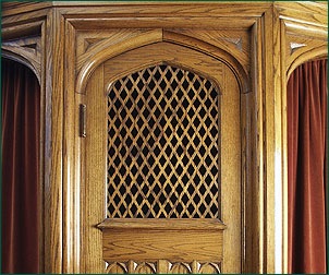 O confessionário é pequeno e desconfortável. Ela raspa com a unha o verniz da madeira. Olha para a treliça que a separa do padre, procurando enxergá-lo.