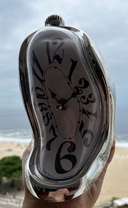 O microconto utilizou boa parte do espaço permitido. Pessoalmente, acho que sobrou umas palavras ali e outras acolá. Creio que seria possível enxugar ele um pouco mais. Por se tratar de um desafio de microcontos, penso que quanto mais conciso, melhor. Por exemplo, penso que a referência ao quando um tanto quanto desnecessária/irrelevante. Ainda mais se você considerar a imagem do relógio derretendo (não teve um artista surrealista que fez uma obra parecida, com um relógio derretendo? Foi o Salvador Dalí? Enfim…)