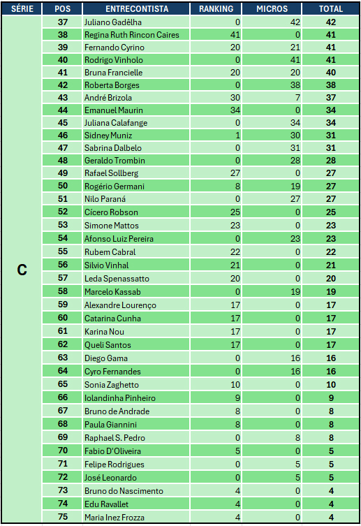 Por ser preliminar a consolidação servirá tão-somente de base para a divisão das séries da primeira rodada da Liga 2025, dependendo da efetivação das inscrições para se consolidar.