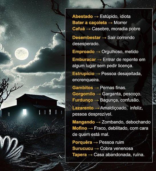 — Vixe, deixe de ser abestado, homi! Eu lá tenho medo de criatura esquisita feito ele? Minha santa mãezinha finou-se num repente. É capaz dela precisar de alguma coisa lá do outro lado. O velho Serapião fala com quem já bateu a caçoleta. Pois então?