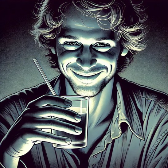 Decidiu complementar a bebida com algo sutil, algo que considerava sua marca registrada. Assim, abaixou as calças e, sem cerimônia, mergulhou o pinto no líquido.