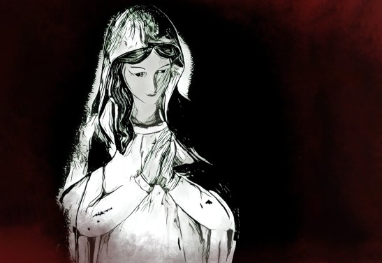Em nosso quarto, sobre a cômoda ao lado da cama havia sempre uma vela acesa num pires, iluminando o rosto da pequena estátua de Nossa Senhora. Quando o vento sul soprava pelas frestas, o bruxulear daquela luz pálida parecia insuflar vida à santa. Sua fisionomia se transformava, diante das minhas pupilas dilatadas pela escuridão e pelo medo, passando da rígida expressão de piedade em que fora esculpida, até chegar a uma inclemente raiva incontida. Seu corpo tremeluzia, desde manto azul até as vestes brancas que cobriam o ventre já proeminente, no qual levava outra vida. Rezei para que tudo aquilo fosse só fantasia. Mas eram visões que se intensificavam, todas as noites, como o pio distante daquela ave agourenta… eu, criança crédula, comecei então a ouvir e a ver coisas muito mais reais do que eu poderia imaginar…