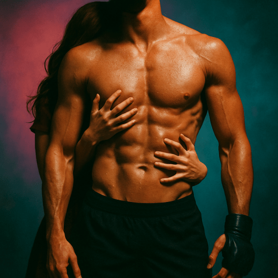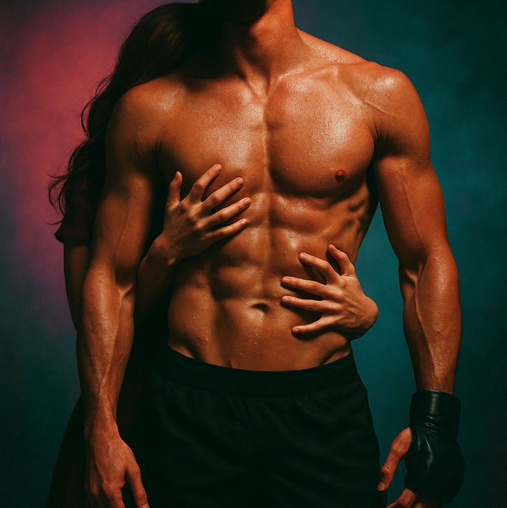 Não precisavam de palavras. Ela se entregou por completo, sabendo que ele queria controle. Joseph a deitou sobre o sofá e arrancou o seu sutiã com destreza exemplar. As mãos de Megan exploraram o tórax perfeitamente emoldurado, então desceram até achar o seu cinto. A boca do lutador explorou os seus seios, sugou os mamilos. Seus beijos desceram e desceram, mas ela o puxou de volta para cima.