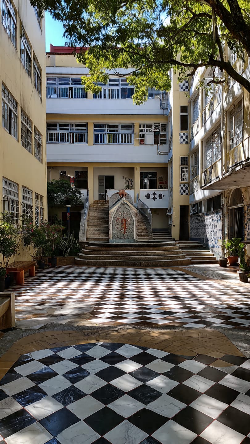 Tudo pronto e armado para o ataque final, o xeque-mate, o desfecho, que deve acontecer logo, mas depois da introdução de duas personagens com ritmos diversos. Primeiro é o diretor da escola, um trabalhador sem vontade própria que se movimenta sem total controle da sua consciência, com camisa semiaberta para mostrar o olho tatuado no peito. Ele age no impulso da resolução quase mecânica de prestações de contas e elaboração de atas e cobranças pelo registro da frequência. Já o menino, que vai levar a moeda ao professor, esse sim, tem alguma motivação e um impulso de interesse. Começa com o professor no grande hall de entrada da escola admirando aquilo que mais parece uma peça de teatro ao nível do melhor grupo de arte dramática do Brasil. Talvez seja relevante descrever esse prédio, uma das construções típicas dos anos 1980, com três blocos de concreto interligados por um pátio interno amplo, onde ficava a gruta de Santo Onofre. No principal bloco estavam as salas de aula e o refeitório; no segundo, a grande quadra esportiva, e, no terceiro, a biblioteca, a sala de atendimento odontológico e o gabinete do diretor. Era pelo hall que mais circulavam as monitoras, o diretor e os responsáveis nos momentos de entrada e de saída. Antes das trezes horas as crianças passando ao lado do muro. Era cada sombra correndo pelos muros, assustavam mais que os arrotos do almoço ainda nem digerido. Havia chovido no dia anterior e as crianças chafurdavam na lama, acreditando serem a Peppa Pig. Nesse espaço, no interior da escola, o professor olhava as crianças, ainda soltas antes da fila de entrada, quando viu aquele magrelo que corria feito um avestruz.