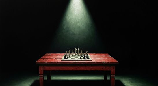 Rígido, Cielo apertou a cadeira com tanta força que sentiu o sangue escorrer pelas mãos. Sem reagir, encarou as peças de granito por horas. Elas pareciam respirar. Até que fez sua jogada. Peão em H3. A sombra não falou nada, permaneceu encarando o tabuleiro.