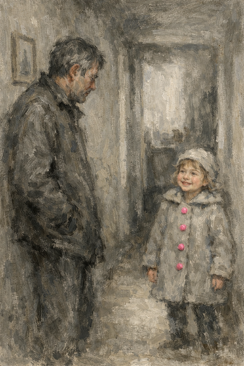 Saiu do quarto. Avistou sua versão menor, com um casaquinho de botões rosas. Deu-lhe o que o espelho não pôde. Sorriu, como quem sorri para si. Não era ele, mas participava do seu ser.